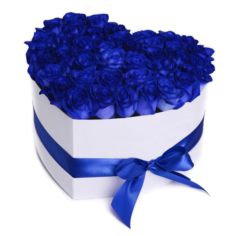 Цветы в коробке «Синее сердце» с доставкой по г Ульяновск: вы можете купить букет в салоне цветов «Флормания» по цене от 3190 руб.